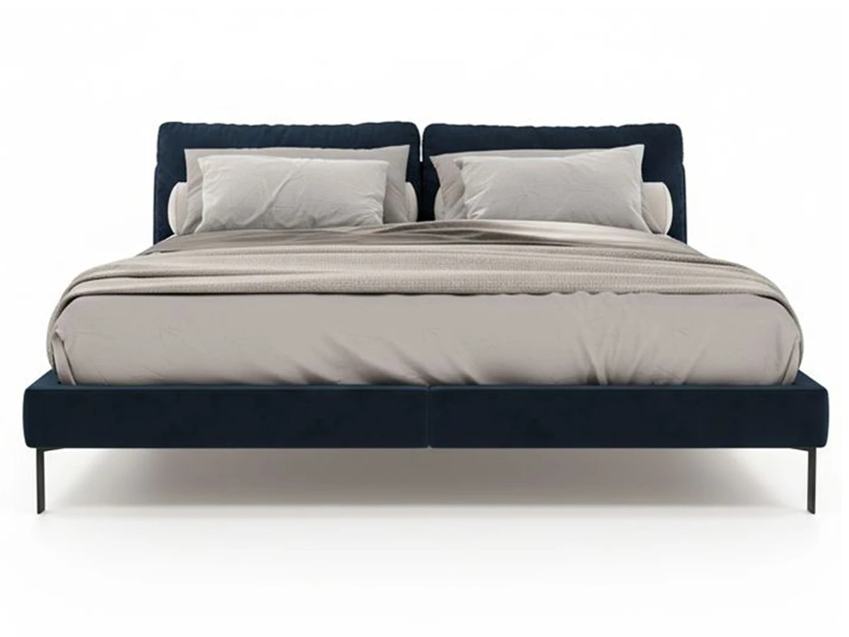 Купить двуспальную кровать из велюра синего цвета в интернет магазине ОГОГО Обстановочка!: