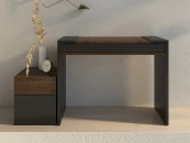 Материалы: шпон дуба, тонировка, мдф, эмаль черная Ral 9011, лак. Поставляется в собранном виде. Возможно окрашивание корпуса в любой цвет по номеру Ral. Удобные для Вас опции, для инсталляции в столешницу тумбы: разъемы USB, беспроводная зарядка для телефона, розетки.