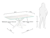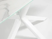 Обеденный стол со стальными ножками, окрашенными белой эпоксидной краской и столешницей из высокотехнологичной фарфоровой плиты со стеклянной основой.