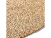 Круглый коврик из джута натурального цвета.