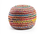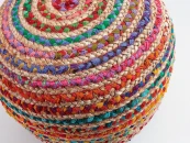Круглый пуф из натурального джута и многоцветного хлопка. Не съемный чехол с наполнителем.