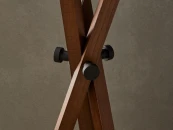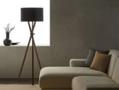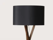 Торшер из орехового дерева на треноге с черным или белым абажуром из хлопка.