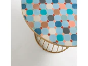Стол Elsa D90 многоцветная мозаика от фабрики La Forma – эксклюзивная модель для создания красоты в доме. Стол Elsa – это настоящее произведение искусства, и по-другому не скажешь! Мозаичная столешница выглядит нарядно и ярко, она словно перевернутый калейдоскоп – так же завораживает взгляд и еще долго его не отпускает. Такое изделие станет изюминкой не только в современном городском интерьере, но и среди более романтичной мебели. Стол круглой формы. Столешница диаметром 90 см сделана из ударопрочной керамики и окантована обручем из оцинкованной стали.