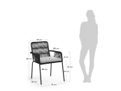 Кресло из оцинкованной стали с порошковым покрытием. Сиденье и спинка из полиэстера, стабилизированного ультрафиолетовым излучением. Подушка в комплекте. Составная. Для внутреннего и наружного использования под прикрытием.