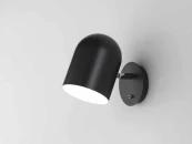Настенное бра из стали, выполненное в черном цвете на короткой ножке и с лампочкой на 60W (не включена в комплект).