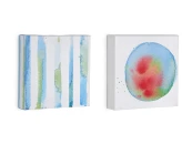 Набор «Oh» придаст вашему пространству взрыв цвета. Он был создан дизайнером команды Kave Home Юлией Кампруби. Произведение искусства и дизайна, объединяющее геометрию в акварели. Одна картинка полосатая в синих и зеленых тонах, а другая содержит синий шар с красными и зелеными отметками. Специально разработан для размещения на одной стене.