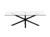Оно полностью прозрачное, стойкое к высоким температурам и механическим воздействиям. Опора металлическая, с черным матовым покрытием. Ножки выполнены в виде квадратных брусков с шириной грани 4 см. Благодаря симметричности конструкции и прочности металла, стол выдерживает нагрузки до 20 кг. А наличие регулируемых наконечников позволит добиться максимальной устойчивости на неровном полу. Размеры: ширина – 130 см, глубина – 70 см, высота – 46 см. Вес – 27,2 кг. Потребуется сборка. Инструкция, крепеж входят в комплектацию.