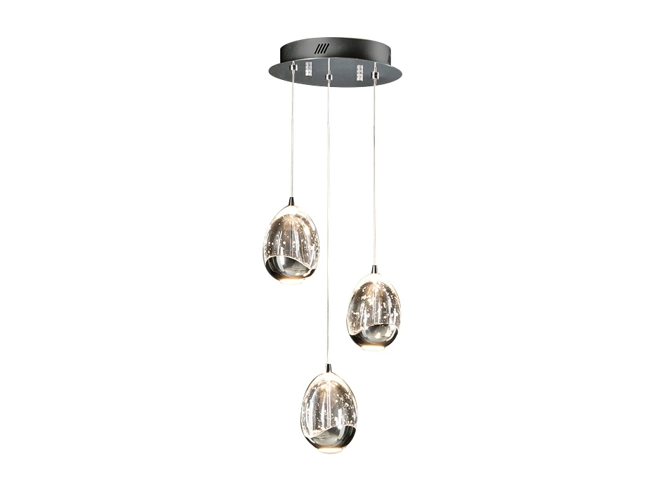 Подвесной светодиодный светильник из металла с покрытием хром. Плафоны в форме капли из массивного стекла с декоративными пузырьками внутри, с регулируемой высотой. 25W LED. 2.400 lm. 3.000 K. Диммируемый. Этот продукт включает драйверы светодиодов с диммером 0-10 В или ШИМ. Для использования с настенным регулятором используйте только диммеры этих двух типов регулирования. Диммер другого типа может повредить драйвер светодиода.