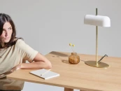 Настольная лампа для гостиной и спальни Atil. Элегантный дизайн со стальным основанием в латунном или черном исполнении и абажуром из опалового стекла, отделка, обеспечивающая равномерное распределение света по абажуру.