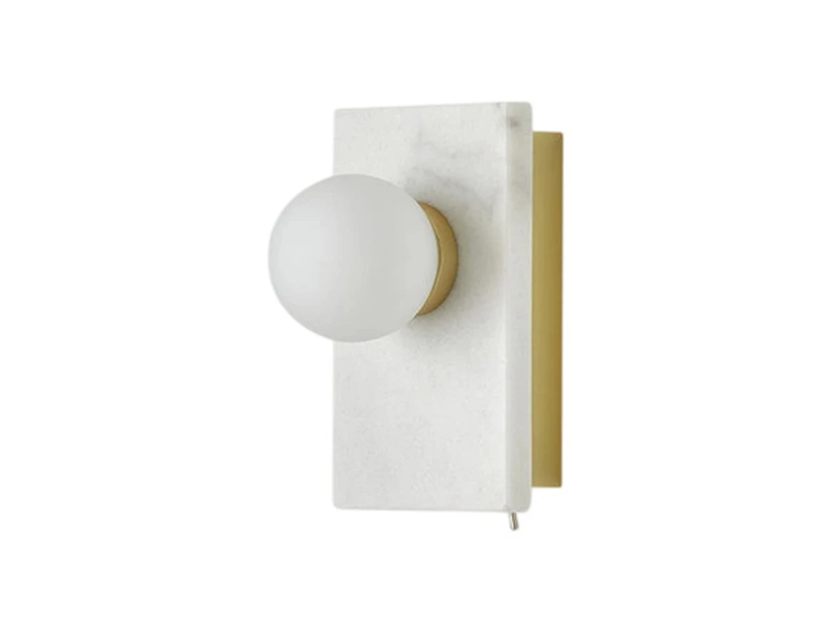 Главная особенность бра Lan — мраморное основание, к которому прикреплены металлические элементы конструкции. Смотрится оно роскошно и самоцельно, а в связке с ним великолепно играет шар-плафон из опалового стекла.
