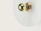 Настенный светильник с металлическим патроном из металла в хромированной, золотой, черной или белой матовой отделке и керамическим экраном в двух размерах. Вы можете добавить декоративную лампочку.
