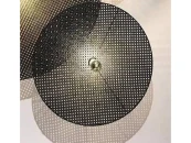 Настенное бра, выполненное из мателла и ротанга в современном стиле. Состоит из металлического фиттинга размером 10 см золотого цвета и рассеивающего диска из ротанга 60 см в черном цвете.