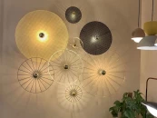 Настенное бра, выполненное из мателла и ротанга в современном стиле. Состоит из металлического фиттинга размером 10 см хромового цвета и рассеивающего диска из ротанга 60 см в натуральном цвете.