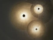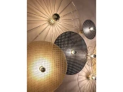 Настенное бра, выполненное из мателла и ротанга в современном стиле. Состоит из металлического фиттинга размером 5 см белого цвета и рассеивающего диска из ротанга 30 см в черном цвете.