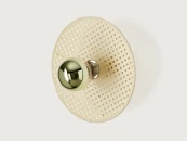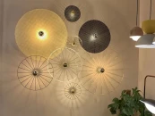 Настенное бра, выполненное из мателла и ротанга в современном стиле. Состоит из металлического фиттинга размером 5 см черного цвета и рассеивающего диска из ротанга 30 см в натуральном цвете.