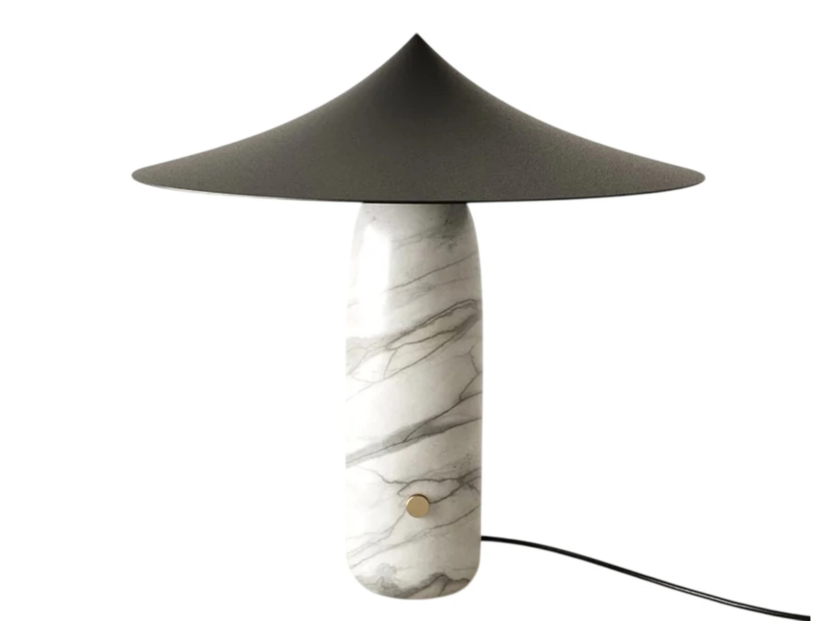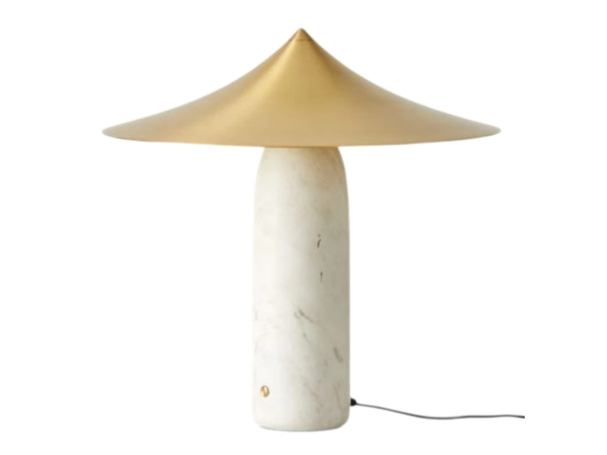 Настольная лампа Kine Aromas del Campo – восточный акцент и совершенный мрамор.Настольная лампа Kine с первой секунды привлекает внимание своим необычным видом. Загнутые края абажура непроизвольно ассоциируются с Востоком, а матовая фактура – тренд городского минимализма. Светодиодная лампа и регулируемый переключатель – удачные решения, которые обеспечат удобную и экономичную эксплуатацию. Лампа Kine – правильная эстетика света в вашем доме.Настольная лампа состоит из мраморного основания и металлического абажура. В зависимости от выбранной модели, абажур может быть латунным, черным или белым. Покрытие порошковое, матовое. Основание цилиндрической формы, с шириной внизу 8 см. Материал изготовления – белый или черный мрамор (зависит от выбранной модели). Неповторимый мраморный орнамент делает каждое изделие уникальным. А прочность этого материала обеспечит стойкость к механическим воздействиям. К лампе подведен электрический кабель в черной оплетке, который включается в сеть. Уровень освещенности регулируется диммером, который находится на основании. Светильник совместим с LED-лампой. Рекомендуемая мощность – 10 Вт. Размеры: ширина – 40 см, высота – 40 см.Светодиодная лампа включена в комплектацию.
