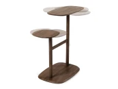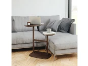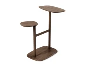 Современный приставной столик с двумя сменными вращающимися столешницами станет нежным акцентом в комнате. Стол изготовлен из натурального дерева. Основание столика можно разместить под диваном или креслом для экономии места. Столешницы легко менять местами, а на перекладину можно повесить плед. Размеры: 69 x 44 x 10 см.