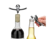 Набор из открывалки для бутылок и штопора украсит бар и станет отличным подарком. Открывалка позволяет снять крышку в одно движение. Конструкция штопора проста: распахнутые объятия человечка служат ручками штопора, нижняя часть тела — чехлом для хранения.