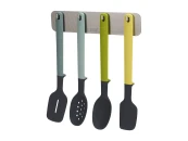 Набор из 4 принадлежностей DoorStore поможет рационально распределить пространство внутри кухонного шкафа. Торговая марка Joseph Joseph порадовала современных хозяек креативной задумкой крепления стеллажа с приборами на задней части двери. Линейка Elevate создана для сохранения чистоты на кухонных поверхностях во время приготовления пищи. Особенность инструментов заключается в конструкции ручек. Они имеют специальную подставку и встроенный утяжелитель, который позволяет испачканной части прибора всегда оставаться на весу.В набор входит 4 предмета с цветными силиконовыми ручками:• поварская ложка• ложка-шумовка• лопатка • лопатка-шумовкаТакже в комплекте есть держатель для приборов, который снабжен клейкой лентой 3M VHB, обеспечивающей надежное крепление на плоской поверхности. Все кухонные принадлежности подходят для посуды с тефлоновым покрытием и мытья в посудомоечной машине.