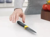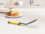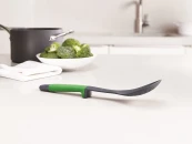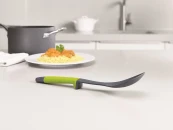 Входит в серию кухонных приборов Elevate, разработанную с целью минимизировать беспорядок во время готовки. Каждый прибор оснащен инновационной утяжеленной ручкой, благодаря которой испачканная часть инструмента всегда остается навесу и не касается рабочей поверхности. Рабочая поверхность инструментов выдерживает до 200 С, эргономичные термостойкие ручки из силикона - до 270 С. Подходят для совместного использования с противопригарной посудой. Ножи изготовлены из высококачественной стали, оснащены эргономичными ручками, а на их лезвия нанесено специальное неприлипающее покрытие.
