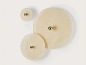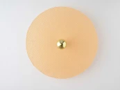 Настенное бра, выполненное из мателла и ротанга в современном стиле. Состоит из металлического фиттинга размером 5 см золотого цвета и рассеивающего диска из ротанга 60 см в натуральном цвете.