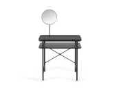 Туалетный столик с ящиком внизу для хранения аксессуаров. Стеклянная столешница плюс регулируемые ножки для обеспечения устойчивости. В комплекте вращающееся зеркало. Дизайн с минималистскими линиями черного цвета. Сочетайте этот предмет с остальной частью коллекции, чтобы завершить образ.