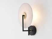 Бра Erto состоит из металлического кронштейна с трубчатой структурой и абажура в виде диска.