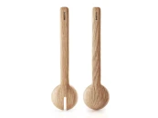 Набор для сервировки салата в духе скандинавского минимализма. Ложка и вилка из натурального дуба будут выглядеть изысканно и элегантно при сервировке на фарфоровой посуде, модно и небрежно — на керамической или деревянной. Благодаря естественной форме и плавным линиям приборы очень удобно держать в руках. Рекомендуем время от времени обрабатывать их минеральным маслом, чтобы продлить срок службы. Приборы можно мыть вручную тёплой водой и неагрессивным средством для посуды или мылом.