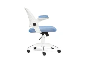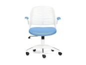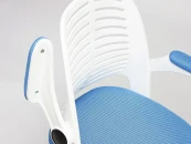 Уникальное кресло JOY – это оригинальное и яркое решение для детской комнаты. Функциональная модель будет удачно смотреться как в рабочем кабинете, так и в детской комнате. Пластиковые подлокотники с мягкими накладками откидываются наверх. Такая функция позволяет задвигать модель под любой стол. Каркас из белого пластика прекрасно сочетается с черными вставками, что делает модель уникальной и привлекательной. Прочная крестовина толщиной 640 мм изготовлена из полиамида, устойчива к жесткой эксплуатации, проста в уходе. Сиденье с мягким наполнителем из пенополиуретана стандартной плотности с сетчатой обивкой долговечно, надежно и износостойко. Удобная слегка выгнутая спинка позволяет расположиться с комфортом и снизить напряжение на позвоночник. Высота и наклон с фиксацией регулируются при помощи основательного механизма. Контрастное сочетание белого пластика с обивкой сиденья синего цвета выглядит выразительно и привлекательно. Высококачественные полиамидные ролики позволяют бесшумно перемещать кресло с места на место, подходят для использования на коврах с низким ворсом и на специальных защитных поверхностях. Кресло JOY идеально впишется в любой современный интерьер и станет его ярким акцентом. Модель поставляется в разобранном виде. Необходима несложная сборка по прилагаемой инструкции. Максимальная нагрузка кресла 120 кг.