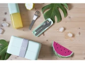 Высококачественный пластик PBT (полибутелентерефталат) полностью безопасен как для человека, так и для окружающей среды. Материал перерабатывается гораздо легче, чем большинство пластика на рынке. Контейнеры не содержат бисфенола и других вредных веществ, их можно разогревать в микроволновой печи и мыть в посудомоечной машине. Верхнюю крышку контейнера рекомендуется мыть на деликатном режиме в посудомоечной машине.