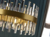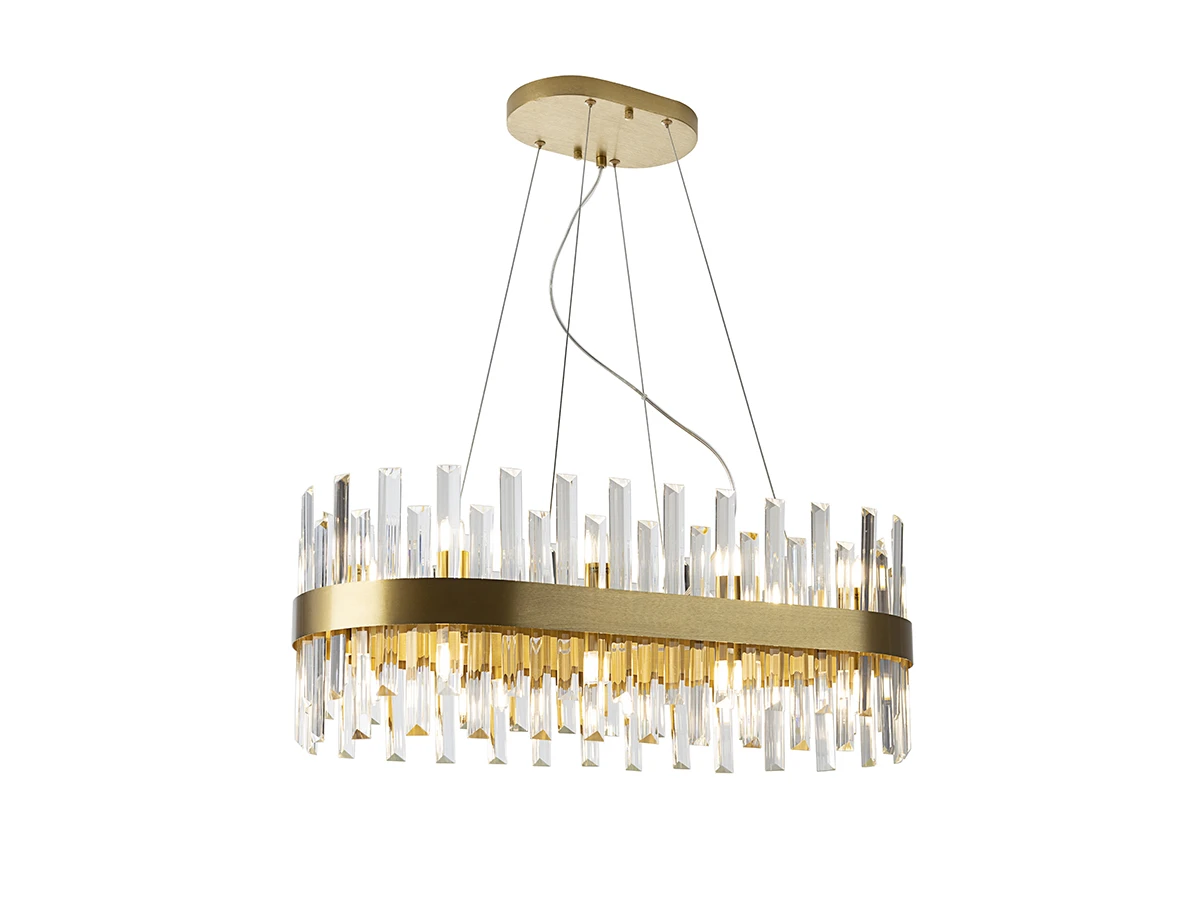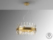 Круглая лампа из 14 лампочек из матового металла с отделкой под золото. Рассеиватель из прозрачного стекла призматической формы. ·Этот товар включает в себя 14 светодиодов G9 мощностью 4 Вт.