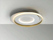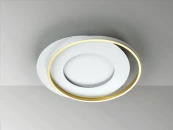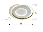 Потолочный светильник из металла и алюминия с матовой белой и золотой отделкой. Опаловый силиконовый рассеиватель. Светодиод 40Вт. 4400 лм. 3000 К.