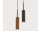 Подвесной светильник из стали с плафоном с кожаной обивкой.