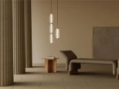 Подвесной светильник, выполненный из стекла и стали в черным или золотистом цвете.