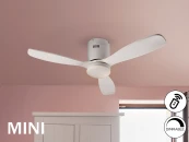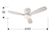 Потолочный вентилятор со светодиодной подсветкой CCT из металла с матовой белой отделкой и белым кольцом. Опаловый рассеиватель и выдвижные лопасти из дымчатого акрила. Двигатель постоянного тока с 6 скоростями и реверсом. Регулируемая цветовая температура. Временная криия