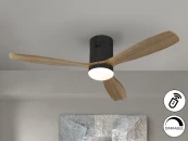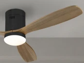 Потолочный вентилятор, светодиодная подсветка с регулируемой яркостью. Изготовлен из металла с сатиновым никелированным покрытием, деревянные лезвия с вишневой отделкой. Рассеиватель из опалового стекла. Двигатель постоянного тока с реверсом. Светодиод CCT трехцветной цветовой температуры. Таймер. Система фиксации против раскачивания