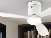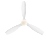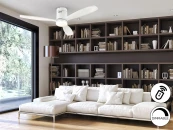 Потолочный вентилятор со светодиодной подсветкой CCT с регулируемой яркостью, изготовлен из металла с матовой белой отделкой и бронзовым кольцом. Опаловый рассеиватель и выдвижные лопасти из дымчатого акрила. Двигатель постоянного тока 6-скоростной и реверс. Регулируемая цветовая температура. Функция таймера.