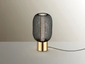 Настольная лампа из 1 лампы. Настольная лампа из металла с отделкой яркого золота и черного цвета. Двойной оттенок с прозрачным акриловым внутренним цилиндром с пузырьками и внешним овалом из черной металлической сетки. Светодиод 5 Вт, 450 лм, 3000 К. DIMMABLE.