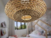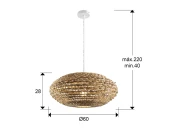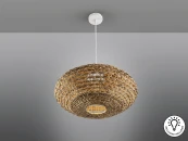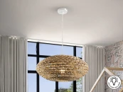 Большой светильник на 1 лампу, выполнен из металла белого цвета. Абажур из ротангового волокна и плетеный водный гиацинт с натуральной отделкой.