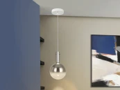 Светильник выполнен из металла, матового белого цвета. Абажур из дутого стекла d20 см, мерцающего серо-дымчатого цвета. Регулируется по длине. Светодиод 4Вт, 340 лм, 3000К.