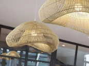 Светильник на 1 лампу из металла, белая отделка. Ротанговый оттенок, натуральный финиш.