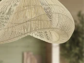 Светильник на 1 лампу из металла, белая отделка. Абажур из ротанга, белая патинированная отделка. ·В комплект входит 1 светодиод E27 мощностью 8 Вт. ДИМАБЕЛЬ Эта лампа поставляется с ГРАВИТАЦИОННЫМИ ПЕРЕКЛЮЧАТЕЛАМИ для улучшения крепления к потолку.