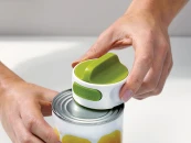 Компактный продуманный прибор с удобной рукояткой. Всего одним движением руки прилегает к краю крышки и плотно фиксируется, после чего банку можно быстро открыть при помощи удобного поворотного механизма. Чтобы полностью снять крышку, достаточно нажать на специальную кнопку. Инструмент одинаково удобен и для правшей, и для левшей. Консервный нож нельзя погружать полностью в воду, рекомендуется протирать влажной тканью.