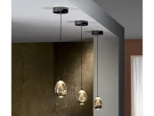 Лампа из 1 светодиодной лампы из металла, матово-черного и блестящего золотого цвета. Абажур в форме капли из цельного стекла с декоративными пузырьками внутри, в тонах шампанского. Регулируется по высоте. Светодиод 5 Вт. 480 лм. 3000К