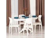 Элегантный обеденный стол STEFANO из коллекции MILAN станет отличным интерьерным акцентом в любой обстановке. Изящное резное основание, цвет Ivory white и просматриваемая текстура дерева подчеркивают красоту и благородство модели. Овальная столешница с раздвижным механизмом ? лучшее решение для небольших помещений. Размеры стола позволяют с комфортом разместить большую компанию. Устойчивые крепкие ножки, выполненные из массива бука, придают столу прочность, надежность и основательность. Модель не требует специального ухода, устойчива к изменению температуры и влаги. Стол STEFANO с удобной овальной столешницей ? роскошный предмет интерьера, который впишется в любой комнате вашего дома, будет радовать своей оригинальностью и долговечностью. Стол подходит для кухни, для гостиной, идеальное решение для загородного дома.Стол очень прост в сборке, инструкция по сборке прилагается.