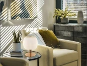 Настольная лампа из металла с блестящей золотой отделкой. Абажур из опалового стекла.