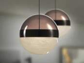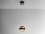 Светодиодная лампа из металла, черного цвета. Абажур d15 см из дымчатого поликарбоната и мраморного стекла, с металлическим кольцом, черного хрома. Светодиод 9 Вт. 3.000 К. 418 лм.