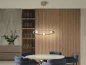 Светильник из стали и матового алюминия, отделка из анодированной бронзы. Три стеклянных сферы, внутренняя часть опаловая, внешняя — прозрачная. Рассеиватель из опалового силикона. РЕГУЛИРУЕМАЯ ЯРКОСТЬ, светодиод 40 Вт, 2700 лм, 3000 К. В комплект входят драйвер TRIAC и НАБОР РЕГУЛИРОВКИ.