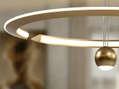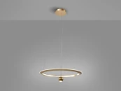 Светильник из стали и матового алюминия, анодированное золото. Рассеиватель из опалового силикона. Позволяет вручную регулировать высоту, потянув за центральный шар. РЕГУЛИРУЕМАЯ ЯРКОСТЬ, светодиод 46 Вт, 3400 лм, 3000 К. Драйвер TRIAC и НАБОР РЕГУЛИРОВКИ входят в комплект.