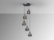 Лампа на 5 ламп, металлическая, матово-черная отделка. Абажур из деградированного дымчатого стекла диаметром 19 см. Регулируемая высота.